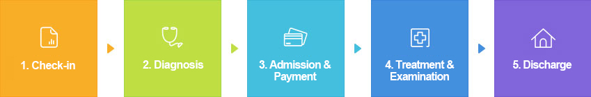 Take your registration receipt to the applicable department reception desk and wait for your turn. After the doctor's diagnosis, receive your discharge note from the nurse.